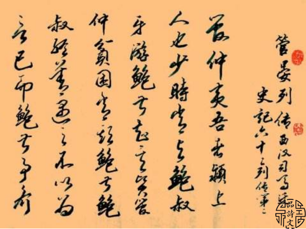 〔注释〕管仲夷吾:管仲(?前645),字夷吾,春秋齐国颍上(今属安徽)人。初事公子纠,后相齐桓公,辅佐桓公成就霸业。鲍叔牙:即鲍叔,春秋齐国人。已而两句:公元前686年,齐襄公昏庸无道,齐将乱,管仲、召忽从公子纠奔鲁,鲍叔从公子小白奔莒。纠、小白均为齐襄公弟。及小白二句:公元前686年,齐襄公被杀,纠与小白争先回国即位。鲁国发兵送纠回齐,并使管仲袭击小白归路,射中小白带钩。小白佯死,使鲁国延误纠的归期,得以先回国即位,即齐桓公。桓公大败鲁军,鲁国被迫杀死纠。召忽自杀,管仲被囚禁。鲍叔遂进管仲:桓公即位后,使鲍叔为宰,他力辞不就,推荐管仲执政。桓公借口解射钩之恨,要鲁国押送管仲回齐。管仲返齐后,桓公任为相。三:多次。不肖:不贤。多:赞美。称:称述。指管仲在《管子》一书中的论述。上:在上者,君主。服度:遵礼守法。四维:指礼、义、廉、耻。桓公实怒二句:实:实际上,真实动机。少姬,齐桓公夫人,蔡国人。桓公曾与少姬在苑囿乘舟,少姬故意荡舟,桓公惊惧,怒而遣少姬回母家,但未断绝关系,蔡人却让少姬改嫁,桓公发兵袭蔡。蔡国,建都上蔡(今河南上蔡西南),后迁新蔡(今属河南)一带。管仲二句:《左传僖公四年》载,齐桓公伐楚,使管仲责之曰:尔贡包茅不入,王祭不共,无以缩酒。包茅,束成捆的菁茅草,古代祭祀时用以滤酒去渣。桓公二句:山戎,又称北戎,古代北方民族,居于今河北省东部,春秋时代常威胁齐、郑、燕等邻国安全。山戎攻燕时,齐桓公曾出兵伐山戎救燕。召公,一作邵公、召康公。西周初人,姬姓,名奭。因封地在召,故称召公。武王灭纣,被封于北燕。官为太保,曾与周公分陕而治,陕以西由他治理。于柯之会四句:鲁庄公十二年(前682),齐桓公攻鲁,约鲁庄公会于柯(今山东阳谷县东),庄公的侍从曹沫(亦作曹刿)以匕首劫桓公,逼他订立盟约,退还侵占的鲁国土地。桓公后欲背约,因管仲进言,终退还鲁国失地,以示信用。知与之二句:见《管子牧民》。与之为取:给予正是为了取得。拟:类似。三归:台名。汉刘向《说苑善说》:管仲故筑三归之台,以自伤于民。反坫(din):反爵之坫。坫为放置酒杯的土台,在两楹之间。互敬酒后,将空杯反置坫上,为周代诸侯宴会之礼。晏平仲婴二句:晏婴(?前500),字平仲,春秋时夷维(今山东高密)人。父死,继任齐卿,历仕灵公、庄公、景公三世。莱,古国名,在今山东黄县东南,公元前567年为齐所灭。重:二种。及之:问到他。危言:不惧危险而直言。危行:正直的行为。顺命:服从君主之命令。衡命:对命令斟酌以后去实行。越石父:春秋时晋国人,有贤名。时因冻饿,为人奴。缧绁(lixi):捆绑人的绳索。左骖(cān):拉车的三匹马中左侧之马。谢:这里表示告辞。闺:内室。戄(ju)然:震惊的样子。摄:整理。伸:伸张(意气)。去:离婚。《牧民》、《山高》、《乘马》、《轻重》、《九府》:皆《管子》篇名。《管子》为战国时齐稷下学者托名管仲所作。其中《牧民》、《乘马》等篇存有管仲遗说。《轻重》等篇对经济问题阐述较多。《晏子春秋》:旧题春秋齐晏婴撰,实系后人依托并采缀晏子言行而作。次:编写。孔子小之:《论语八佾》有管仲之器小哉语。将顺其美三句:见《孝经事君》。方晏子二句:齐大夫崔杼因齐庄公与其妻私通而杀之,晏婴至崔家伏庄公尸哭之,尽君臣之礼而去。事见《左传襄公二十五年》。见义句:《论语为政》:见义不为,无勇也。进思二句:见《孝经事君》。