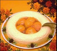 香竹饭带着淡淡的清香傣族人喜欢吃糯食,因此,用糯米做的黄米饭、年糕、糯米粑粑、米干、米线等食品,都颇有特色。其中最有代表性的是香竹饭。香竹饭,傣语称 “考澜 ”,只能用具有特殊香味的香竹 “埋考澜 ”煮制。香竹为乔本科竹类,杆细如酒杯,内壁粘有一层具有特殊香气的白色竹瓤。香竹饭是用西双版纳一种本身会散发..