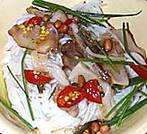 ?桂林米粉在历史上就独享盛名。其特点不在米粉本身,而在调料和配菜的讲究。配菜是将卤好的猪肉、牛肉、马肉等过油稍炸,使其甘香韧脆;调料则是肉类卤后的汤加上数十种中药、香料熬制所得的卤水。一碗热腾腾的米粉,铺上一层卤莱,加些酥脆的黄豆或花生米,撒点葱花、香菜 ,淋上熟油、卤水,端上来香气四溢,鲜美可人。所以,卤菜甘香和卤水鲜甜才是桂林米粉的特色。