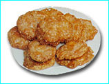 ?广州名饼鸡仔饼,原名“小凤饼”,据说是清咸丰年间广州西关姓伍的富家有一名叫小凤的女工所创制,其成为名饼却在半个世纪之后,广州河南成珠茶楼因中秋月饼滞销,制饼师傅急中生智,把制月饼的原料按小凤饼的方法制作,并大胆地用搓烂的月饼和猪肉、菜心混合为馅料,再调以南乳、蒜茸、胡椒粉、五香粉和盐,制作出甜中带咸、甘香酥脆的新品种“成珠小凤饼”来,因其异味香脆而受到顾客青睐。小凤饼形状像雏鸡,故又称鸡仔饼。其后,又进一步改进,务求精制巧作,并改进包装,罐装或盒装,远销东南亚。