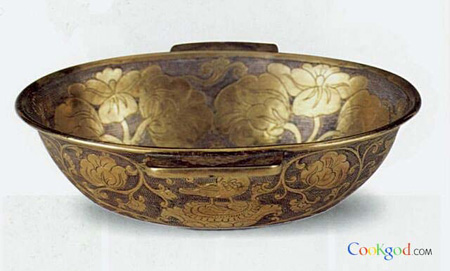 英文名称:Silvershangwithdesignofgoldflowerandmandarinduck