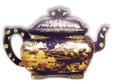 宜兴窑紫砂黑漆描金彩绘方壶 清雍正