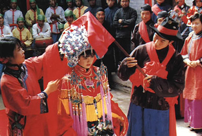 但大礼中,不管家境如何,茶叶、龙凤饼、枣、花生等一些象征性礼品,也是不可缺少的。茶叶当然还带有“从一”的含义。女方收到男家的彩礼以后,随即也要送嫁妆和陪奁,经过这些程序以后,才算完聘。女方的嫁妆也随家庭经济条件而有多寡,但不管怎样,一对茶叶罐和梳妆盒是省不掉的。