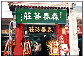 1956年森泰茶庄参加合营,其货源由北京茶叶公司供应。现在的森泰是北京尚存的老茶庄之一。历尽百余年风雨的森泰,如今旧貌换新颜,虽不自行加工茶叶,但经营品种扩大到红茶、绿茶、花茶、乌龙茶、保健茶等几大类,各种不同规格的高、中、低档茶叶应有尽有。