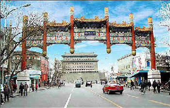 崇文区政府一工作人员说,前门大街修缮后,原来的老字号店部分将回迁,近百个京城老字号将在商业街两侧亮相,而且全部是黑底金字招牌。
