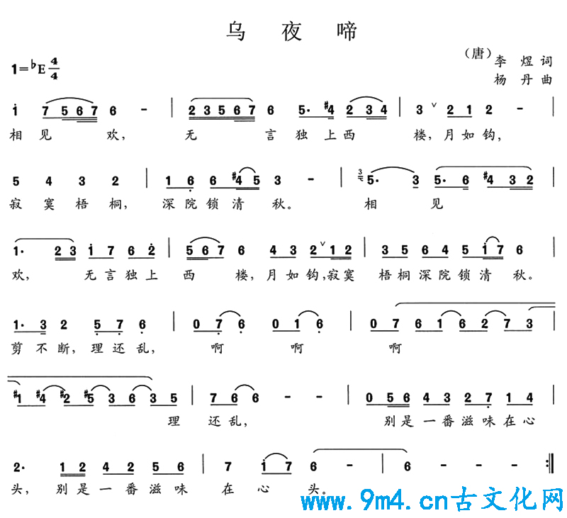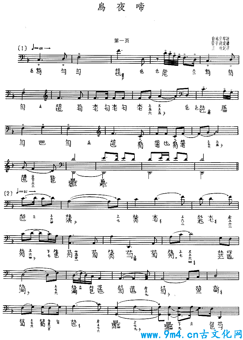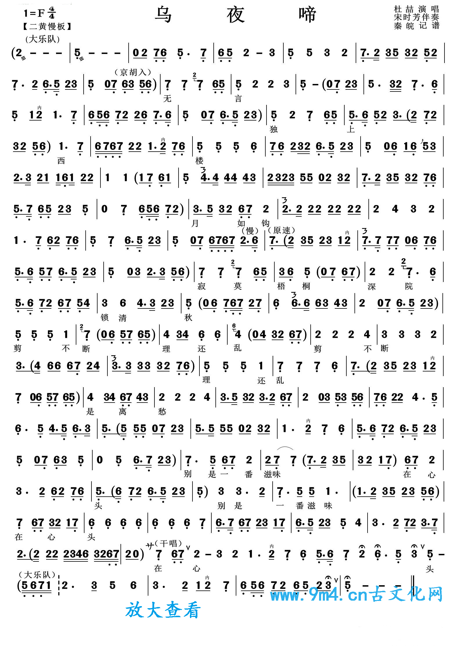 古琴文化之古琴琴谱《乌夜啼》在线阅读