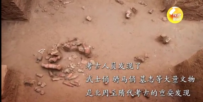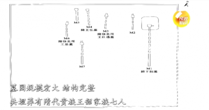 墓园内埋葬王韶、王韶嫡长孙王弘、北周原州刺史王楷(王韶祖父)长子王显、王楷长孙王仕通等数代七人。王韶墓规模最大,系地面有封土的7天井双室土洞墓,全长60米,深13.6米,其规模仅次于潼关税村隋代壁画墓,远高于已发现的普通隋墓。考古人员介绍,兆域内分布有7座墓葬,均为斜坡墓道多天井的土洞墓,坐北朝南,具有典型的北周-隋代墓葬形制特征。以M1王韶墓规模最大、等级最高。M1地表原有封土,早年被推平,现仅存底部厚约0.3米。该墓被盗严重,墓室内共出土各类随葬品67件(组),散乱分布在墓室和壁龛内,器形可辨有武士俑、镇墓兽,骑马俑、立俑及陶猪、陶鸡等。另有少量墓志残块,无法复原。
