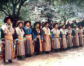 四川是个山多、河流多,地形复杂的省份。若想深入川北羌族地区,去亲眼目睹充满异域风采的民俗歌舞活动,那必须从成都出发先到四川藏族羌族自治州首府茂县,然后再奔赴岷山之中的各个羌族集聚地。要想考察羌族古老的礼仪舞蹈《克西格拉》,就必须花上将近一天时间,在高山叠嶂的重重包围中驶过漫长的柏油路、石子路、土路和用脚踩出来的羊肠小路,当地平线上出现了座座矗立于高山之颠、朴实无华的羌寨“邛笼”时,那距离目的地岷山深处的西尔地区麻窝乡西尔瓜子寨就不远了。
