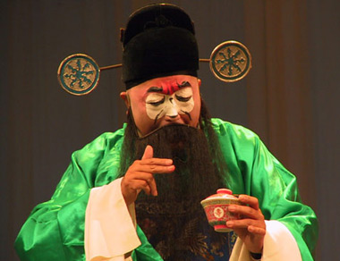 昆剧有《鸣凤记·吃茶》一折。戏是这样的:赵文华因给奸相严嵩祝寿而深得严的欢心,得以升为通政使。正在得意之时,杨继盛忍着一腔怒火前来,送来一份奏章,要赵转呈严嵩。其时,两人都借茶为名,旁敲侧击地展开了一场唇枪舌剑的激烈斗争。这场戏就是以吃茶来推进情节的发展。昆剧中的茶戏很多。还有一折表现茶馆的戏——《寻亲记·茶坊》,写一位茶博士向微服私访的范仲淹揭露恶霸的罪行。剧中的表演也从“茶”提炼,如茶博士一手撑腰,像把壶,一手弯曲,成壶嘴状;抬足,摆身,恰似冲茶时茶壶三起三落的“凤凰三点头”。还有《水浒记·借茶》、《玉簪记·茶叙》、《凤争误·茶园》等等。这么多的茶戏,从一个侧面反映了昆剧同人民生活的密切联系,也说明了剧作家和表演艺术家捕捉生活的本领。现代戏剧中更不乏写到茶的。老舍曾领我们去逛过王掌柜父子俩惨淡经营的北京老裕泰茶馆:郭沫若在《孔雀胆》里同我们一起品饮过福建工夫茶;曹禺曾邀我们去拜访过那位十分精于品茶的曾文清,他是《北京人》中的曾家大少爷。