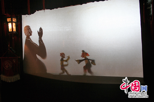腾空驾云——皮影人在亮子上的位置,全由掌签者决定,因之可升天,可入地。表现神仙佛道,多有一分奇妙色彩;飞鸟掠空,更是容易的事情。