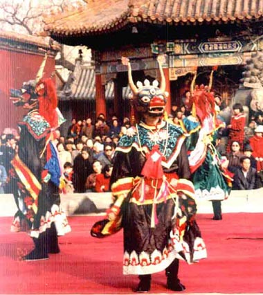北京雍和宫“跳布札”俗名“打鬼”,每年农历元月二十九日演出,三十日“绕寺”。《燕京岁时记》说:“打鬼本西域佛法,并非怪异,是古者九门观傩之遗风,亦所以拔除不祥也。”