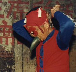 作为傩面具神,称为鸡嘴神(又称鸡傩神)、猪嘴神。二神面具极有特点:都由木雕的上额(俗称额子)、下嘴、耳翼三部分组成,上额刻有两只圆眼,额心书“雨聻”组合的道符,两侧用绳子连接耳翼;鸡嘴由两片中间挖空的椎形圆木合成;猪嘴由一段中间挖空的圆形木块制成。表演时,弟子头扎红巾,身穿黑衣红褂与红布边裙,套上面具,露出面颊。