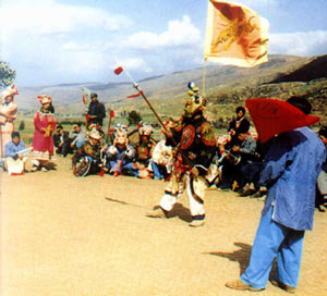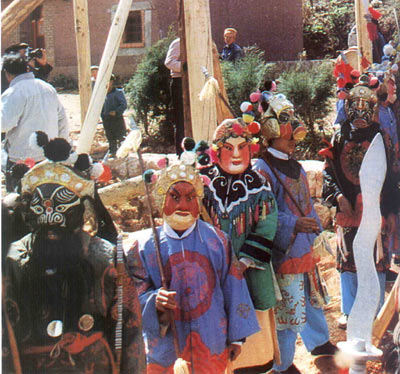 祭祀活动是在农历腊月举行,先择好吉日,在村中灵峰寺正殿神位上供奉“药王”,并在村中撵一只鸡,领牲后将鸡宰杀,全体演员跪在神位前谢药王,颂念:“药王大将,今天我们大家诚心诚意替您家去玩玩”。祭祀后开始练武、排练节目、持续到除夕。演员要在寺内烧水洗澡净身,吃住在寺庙,一直到正月十六日演出结束。