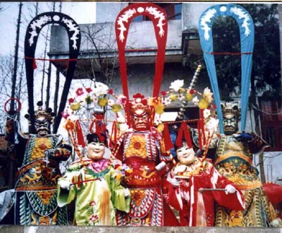 此仪一般举行三天。举行前由道士(村民称“司人”)按“兵书”作“放兵”仪式,至初四晚作“收兵”仪式,才算全部结束。“放兵”是在僻静处,地上供五把叉,叉前供三荤、三素,及五杯酒、五杯茶。放鞭炮、然纸,司人念咒,咬断公鸡头,洒血地上,“放兵”才算结束。