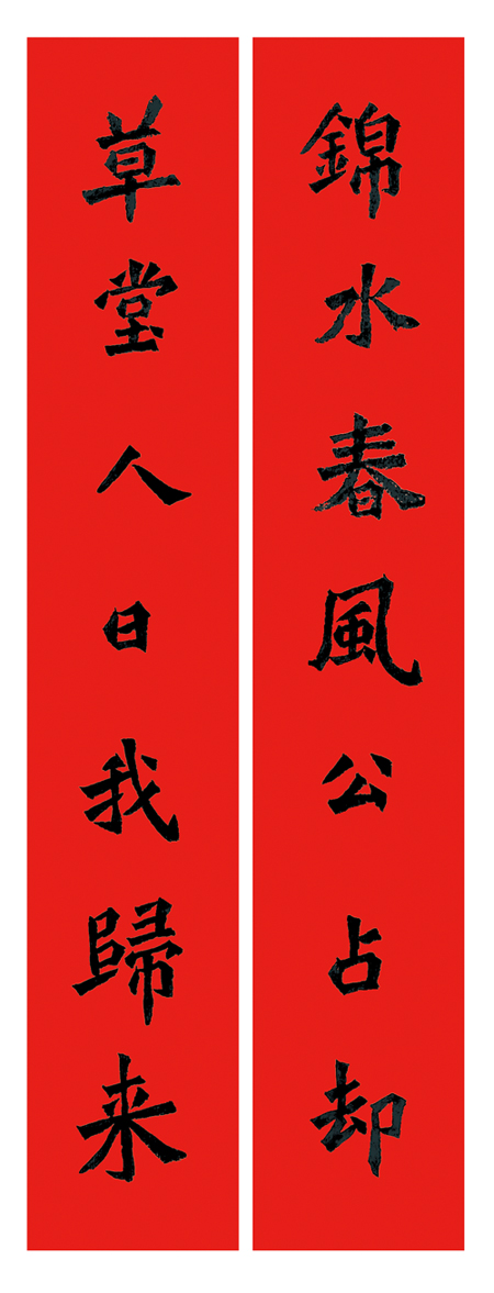 此联将时间(人日、春风),地点(锦江、草堂),人物(杜、何),情感(占却、归来)诸要素巧妙地融入联中,对仗工整、浑然天成,为“杜甫草堂”又添一段文坛嘉话。