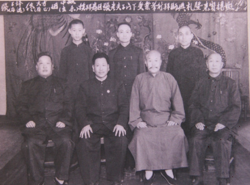1953年张寿臣收徒佟大芳、田立禾等合影,左三为张寿臣,后排左一为田立禾