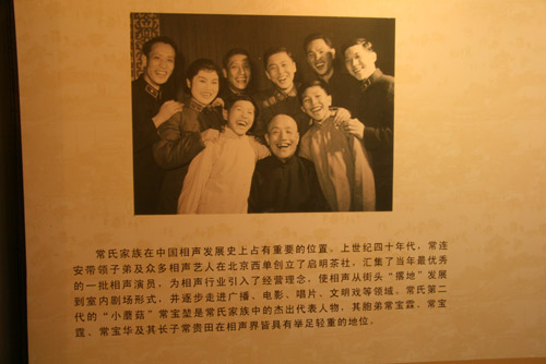 常氏家族:常氏家族在中国相声发展史上占有重要的位置。上世纪四十年代,常连安带领子弟及众多相声艺人在北京西单创立了启明茶社,汇集了当年最优秀的一批相声演员,为相声行业引入了经营理念,使相声从街头撂地发展到室内剧场形式,并逐步走进广播、电影、唱片、文明戏等领域。常氏第二代的“小蘑菇”常宝堃是常氏家族中的杰出代表人物,其胞弟常宝霖、常宝霆、常宝华及其长子常贵田在相声界皆具有举足轻重的地位。