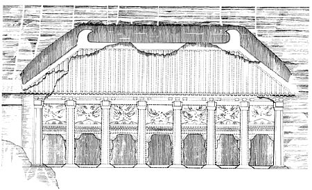 到南北朝时,北朝一些僧徒谄称皇帝为“当今如来”,铸造巨大的金铜佛像以象征帝王。这些大像,塔中不能容纳,更需要建殿安置,以与其兼有的帝王身分相适应。因此,佛殿在寺中逐渐取得和佛塔并重的地位。重要佛寺的大殿宛如宫殿,一些由国家建的大型佛寺就逐渐宫殿化了。