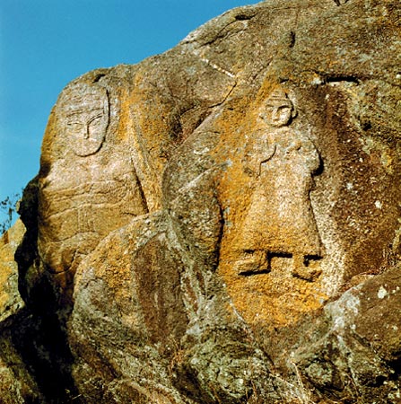 在江苏连云港市郊的孔望山崖壁上及其附近,留有大量佛教题材的石刻。内容有具背光之佛像及涅磐之卧佛、佛弟子、象及象奴、蟾蜍等。经专家鉴定,至少有一部分是刻于东汉时代。这是我国发现最早的佛教摩崖石刻,时代早于山西大同始凿于北魏的云冈石窟。