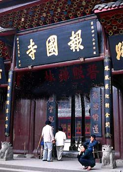 报国寺坐落于峨嵋山麓,是山下的第一座寺庙,峨嵋的进山门户。该寺建于明万历年间,为全山八大名寺之一,寺内正殿原供奉着佛、道、儒三教的代表,曾名“会宗堂”,有“三教会宗”的意思,清康熙帝取佛门“报国主恩”意,改为报国寺。山门悬有康熙书“报国寺”匾额;正殿悬有“宝相庄严”匾。殿宇雄伟,有弥勒殿、大雄殿、七佛殿和藏经楼四重屋宇,依山而建,逐级升高。