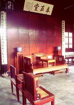 走进曲园门楼,经过一个遍植修竹的天井,就是小竹里馆,屋内四角悬挂宫灯,中间是俞樾的油画像,在左右墙上挂着多幅描绘俞樾生平故事的国画。壁上还嵌着俞樾《曲园记》的砖刻。经过一个廊屋,就可以看到一座轩敞明亮的厅堂春在堂。这是曲园主要建筑之一。据说俞樾在北京保和殿参加翰林考试,试卷的诗题为“谵烟疏雨落花天”,俞樾依题作诗,首句为“花落春仍在”,由于蹊径独辟,深得阅卷官曾国藩的赏识,考试结果,名列前茅。因之俞樾以“春在”作堂名,并且把自己250卷著作称为《春在堂全书》。堂内陈设简朴,中间一具坑床,左边置一书桌,上有文房四宝,现在还陈列着俞樾著作的书箱及木刻版片500余片。这里原是俞樾读书著作的书斋,也是接待宾朋、谈诗论文的所在。春在堂之东是乐知堂,是全园的正厅,取“乐天而知命”之意,堂中一副楹联为俞樾所撰、当代书法家张辛稼书写:三多以外有三多多德多才多觉悟;四美之先标四美美名美寿美儿孙。这是俞樾人生观的表露。