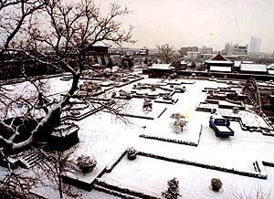 岱庙占地面积约9.65万平方米,雉堞周匝,四隅角楼,四面辟门,庙内的建筑可分中、东、西三路。中轴线上由南向北依次为正阳门、遥参亭、天贶殿、寝宫;东路为钟楼、汉柏院、东御座;西路为鼓楼、唐槐院、道舍院。