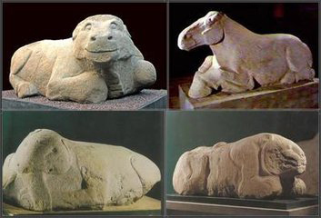 霍去病墓前的卧马、卧象、石虎、野猪雕塑