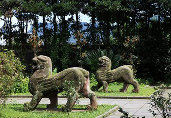 亦称“辟邪”,是想象中的神兽。在四川雅安姚桥高颐墓神道两侧。刻于东汉献帝建安十四年(209)。为我国现存最早的两对形似狮子的“辟邪”之一(另一对在山东省嘉祥县武氏墓石祠前,雕刻于东汉桓帝建和元年公元147年)。高颐曾任益州太守,卒于建安十四年(公元209年),石雕神兽当建造于此时或其后不久,是东汉末年作品。