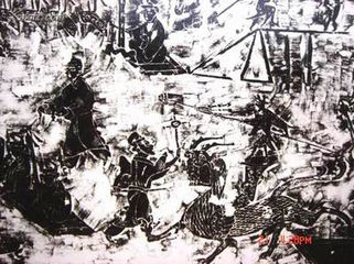 总之,这幅《冶铁图》使我们对汉代冶铁工场的规模、开采、锻造工序以及鼓风机的结构和原理了解有了第一手资料,它的发现在中国冶金史上有着极其重要的地位。