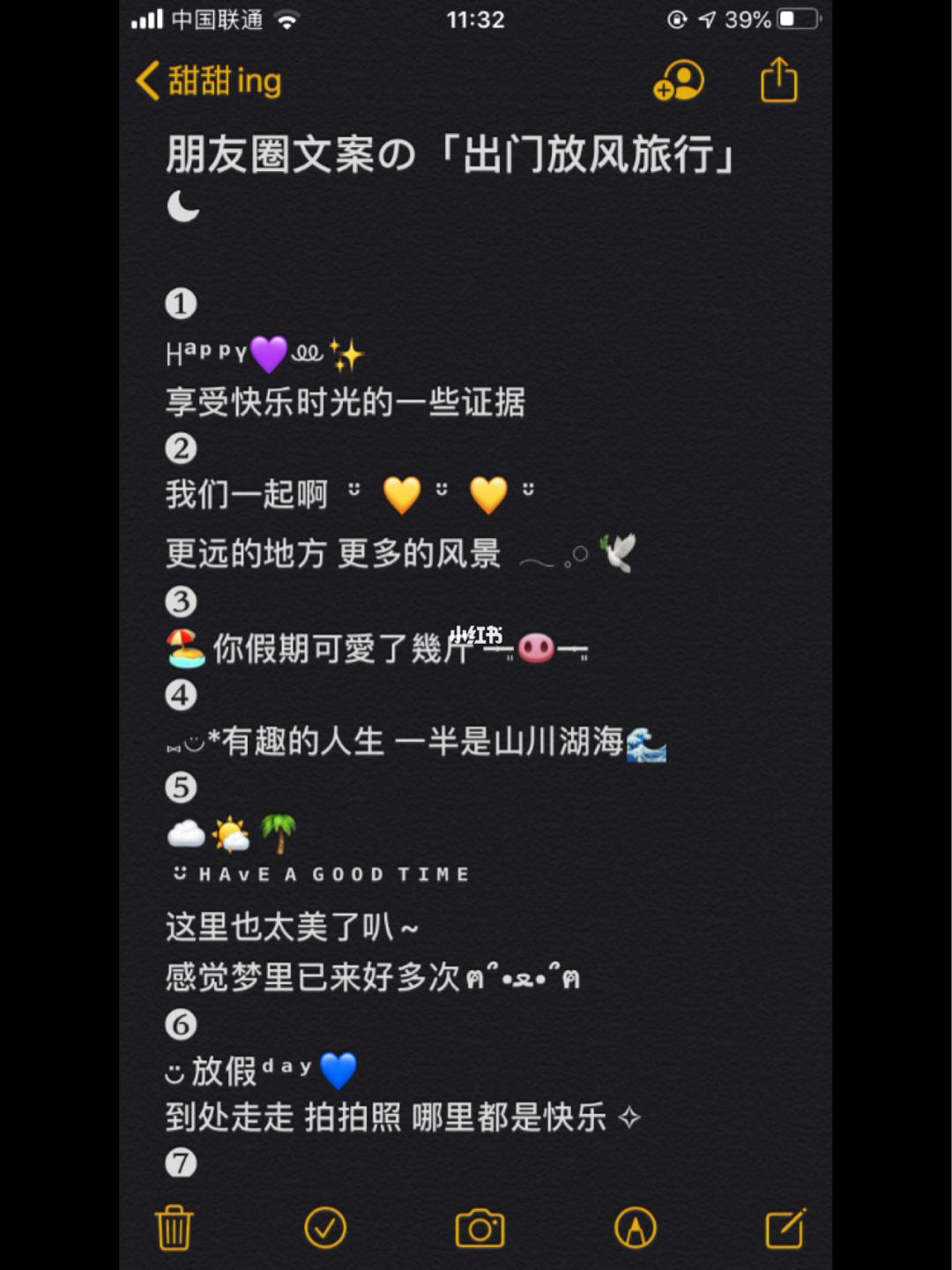 个地方玩手机了文案朋友圈出去玩! 旅行的朋友圈文案文案朋友圈出去玩,出去玩的文案短句朋友圈 26来了万物都在努力获得新生你也要加油 27我的夜晚有溏心月亮蛋 28,天热得连蜻蜓都只敢贴着树荫处飞,好像怕阳光伤文案朋友圈出去玩;出去溜达发的朋友圈 出去玩晒朋友圈的文案来源 时间20210125 093447 点击次 1愿你踏遍山河 觉得人间值得2很放松,只是没有分享快乐的人3以为是乏味的城市。
