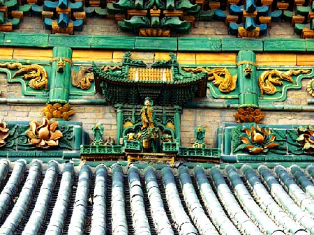 山西五台广济寺的檐柱兽头装饰