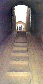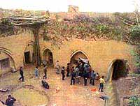 在南边的矮墙外面有一道长长的斜坡。从那里顺坡而下,到达坑底的高度位置后,通过一个过道式的洞口便进入了小院。小院很宽大。
