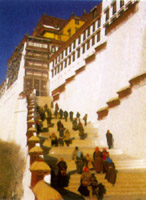 藏传佛教寺院建筑艺术,在西藏古代建筑艺术中,最富有民族和时代特色,多依山而建、规模宏大,气势浑厚,工艺精致,金碧辉煌,蔚为壮观。从佛教寺院形成之初,到藏传佛教寺院建筑艺术主体风格的形成,其间大体经历了寺庙、寺院、宫殿与寺院建筑融合的三个发展阶段。