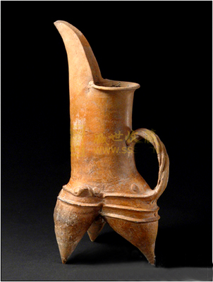 1953年在山东省滕县岗上村出土赭黄色三脚豆、造型别致的黄色酒器
