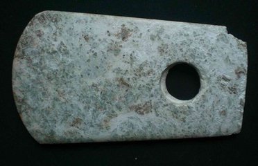 玉钺(yuè)是由石斧演变而成的一种制作精良但没有使用价值的礼器,在新石器时代,是特权贵族的权杖,表示拥有军事统帅权,作为军事首领的象征物,对外负责征战杀戮,对内有权统帅下属。到夏、商的奴隶社会,玉钺则为青铜钺所替代。这柄玉钺是1986年6月出土于浙江余姚反山良渚文化墓地12号墓,是良渚文化玉器中首屈一指的珍品。