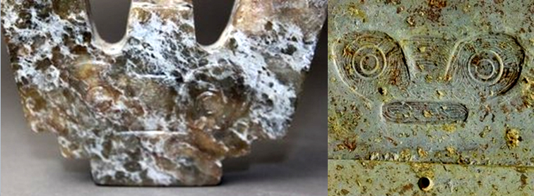 浙江余姚瑶山祭坛墓地出土的三叉型玉冠饰 三叉型玉冠饰上的神兽纹
