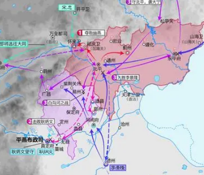 李景隆先在德州集结各路兵马,随后北进到河间。朱棣深知李景隆只会纸上谈兵,对他统兵前来十分高兴,于是安抚众将说:“李景隆是个纨绔少年,只会夸夸其谈,很容易对付。”随后朱棣让长子朱高炽守卫北平,自己带兵救援遭明军围困的永平并前去拉拢驻守大宁的宁王朱权。