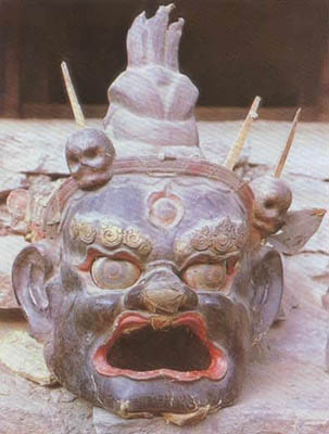 面具,藏语中称“巴”,主要用于各种民间表演活动,它与人们日常生活、劳动、娱乐有着直接的关系,遍及西藏各地。通到了清代,藏戏广泛普及到民间,其剧目、流派更加丰富多彩。藏戏面具与宗教面具相比,造型带有浓郁的世俗倾向和民间色彩。表现的题材主要包括历史故事和神话中的人物、神灵和动物。藏戏面具中的国王、大臣、..
