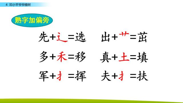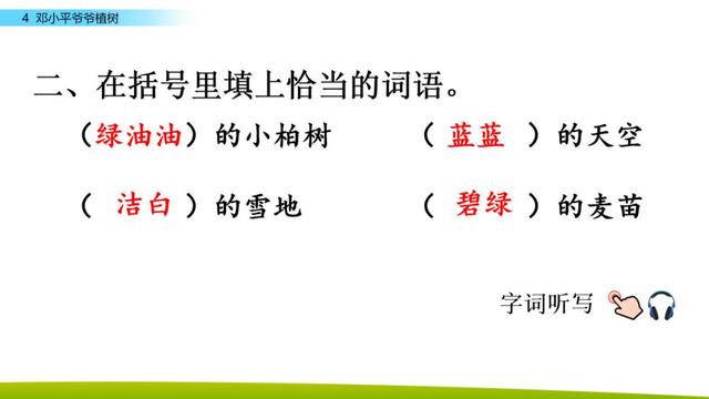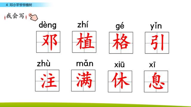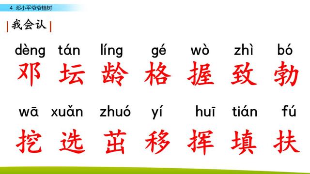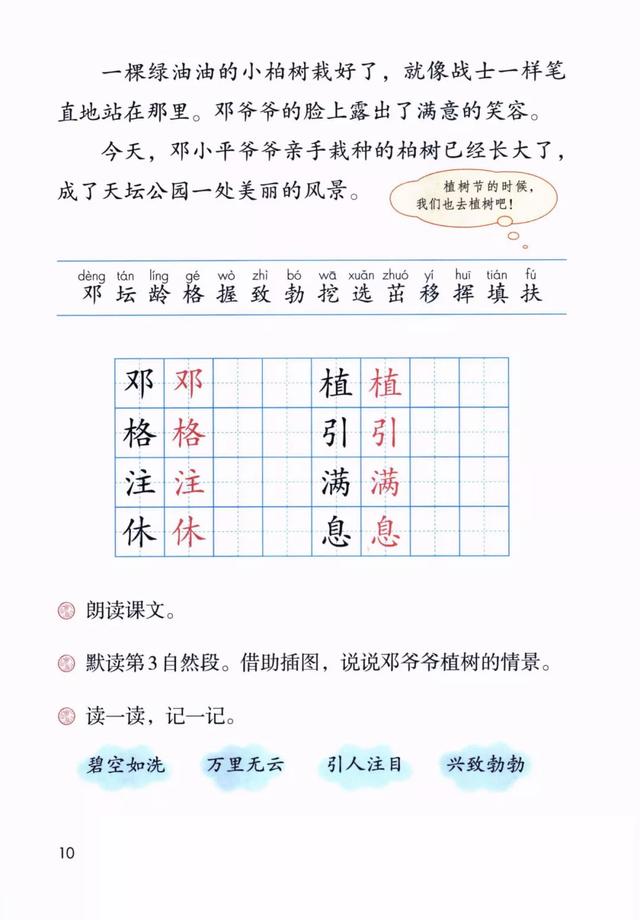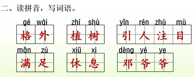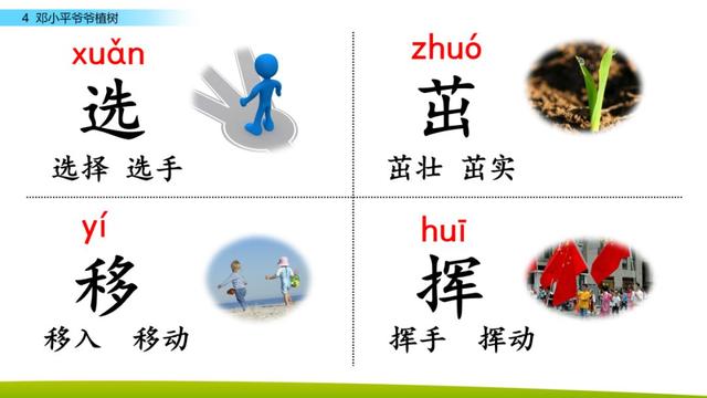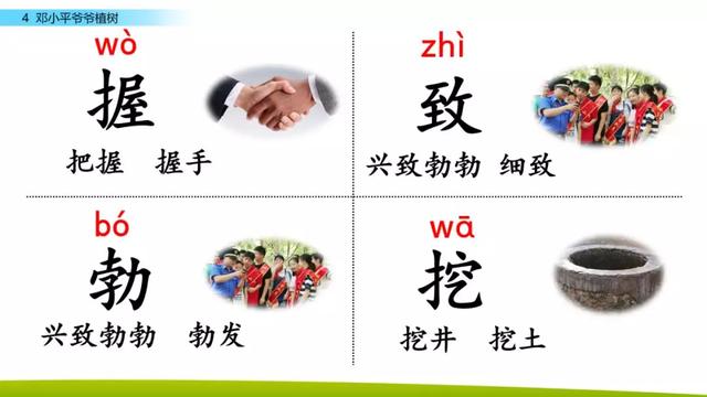 2.邓爷爷精心地挑选爷爷的拼音了一棵茁壮的柏树苗,小心地移入树坑,又挥锹填了几锹土。