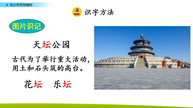 3.今天,邓小平爷爷亲手栽种的柏树已经长大了,成了天坛公园一处美丽的风景。