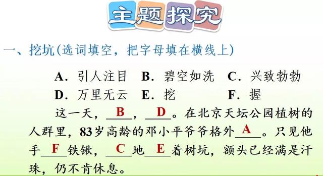 1. 只见爷爷的拼音他手握铁锹,兴致勃勃地挖着树坑,额头已经满是汗珠,仍不肯休息。
