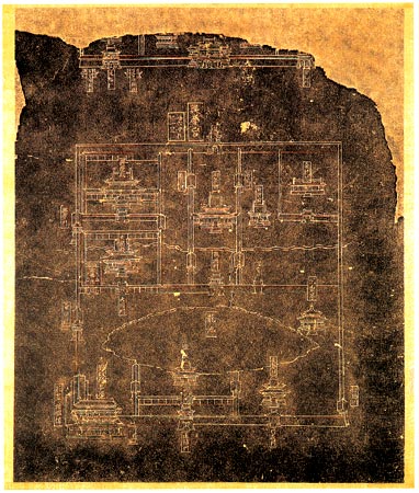 隋东都紫微宫即唐改称的洛阳宫,在东都洛阳城西北角。宫城东西宽2080米,南北深1052米,主要分三部分。中部为大内,宽1030米,面积为1.08平方公里。东部为东宫,西部为西隔城,均宽340米。它们之外侧各有夹城,分别宽190米和180米。大内前为朝区,后为寝区。朝区最前为大内正门则天门,上建高两层的门楼,门外左右建阙,形..