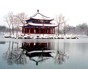 圆明园坐落于北京市海淀区,原是明代皇族的故园,清康熙四十八年(公元1709年)成为皇四子胤禛(即雍正皇帝)的赐园。雍正即位后,自1725年起大加扩建,占地达三千亩,造景二十八处。乾隆即位后继续扩建,至1745年又造景四十处,命宫廷画家按景绘图,并亲自通景题诗,流传至今。1749—1751年乾隆又于圆明园东建长春园。1760年,又在长春园北端,按欧洲巴洛克形式建成大水法十景,俗称西洋楼。1772年长春园以南诸家私园建成绮春园(后改万春园)。嘉庆十四年(公元1809年)又命收西路几个赐园,合成三十景。至此,历时一百多年,三园基本建成。