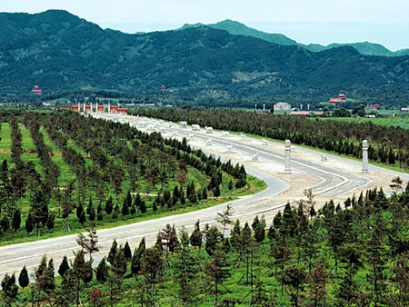 1 11月 遵化清东陵是顺治、康熙、乾隆、咸丰、同治五代皇帝和后妃的陵寝,北有燕山余脉昌瑞山为屏蔽,中有西大河、来水河流贯其间,山水灵秀,风景绝佳。其中顺治的孝陵是陵区的主陵,其他各陵依序排列两旁。孝陵的轴线布局气魄十分雄大,自南至北长达十余里,排列着石坊、大红门、圣德神功碑亭、十八对石象生群、龙凤门、神路桥、碑亭、隆恩门、隆恩殿、三座门、二柱棂星门、石五供、方城明楼,最后为宝顶地宫等一系列陵寝建筑。