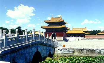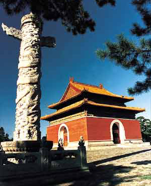 雍正皇帝的泰陵是西陵建筑年代最早、规模最大、体系最为完整的陵墓。陵园始建于雍正八年(公元1730年),乾隆二年(公元1737年)竣工,雍正帝和一后一妃葬于此陵。陵入口处的标志是三座巨大的石牌坊,过了石牌坊是一条宽10米、长2.5公里的神道,神道将中轴线两侧的建筑贯通起来。进入大红门后,北侧是具服殿,殿北是30多米高的圣德林功碑亭,重檐歇山顶,亭内的碑石上记载了雍正帝一生的功绩。碑亭的四角各立有一座汉白玉石的华表,满刻云龙纹的浮雕,气势庄严。由此过七孔石桥,神道两侧排列的石兽、石人等皆垂首肃立,神态恭谦。再往北蜘蛛山后就是龙凤门,四壁三门,上有用琉璃制作的云龙花卉装饰。门的两侧是碑亭、神厨库、井亭等建筑。再北是主殿隆恩殿,殿内明柱沥粉贴金包裹,顶部饰旋子彩画,梁枋装饰金线大点金,殿宇金碧辉煌。殿后依次是三座门、二柱门、石五供、方城、明楼等建筑,宝城的下面是地宫,雍正帝和后妃就合葬于此。昌陵是嘉庆皇帝的陵墓,位于泰陵西侧。建筑形式与泰陵大同小异,规模并列。从前面的神道到最后的宝城,一应俱全,但昌陵的宝城比泰陵还高大。隆恩殿里,用贵重的花斑石砌墁,黄色的方石板上有天然雅致的紫色花纹,光彩耀目,满殿生辉,素有“满堂宝石”之称。嘉庆皇帝的皇后陵昌西陵的回音石、回音壁,回音效果绝妙无比,可与北京天坛的回音壁相媲美。