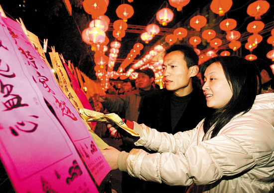 在元宵之夜,人们不仅以赏灯为乐,同时还会进行猜谜的游戏。谜语张贴在各种各样的花灯上,称之为灯谜或春灯谜。