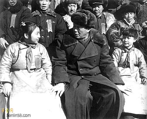 乌兰夫与草原英雄小姐妹在一起(资料图片)