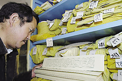 西藏自治区社会科学院藏文古籍出版社的藏族学者次旦在整理古籍