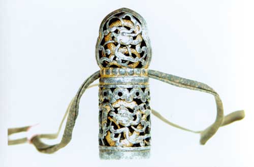 这颗印章总体雕刻与纹饰分布都颇有新意,体现了称霸一方的拉加里法王的威仪。非常幸运的是历经几百年,至今它还保留有原装鹿皮印绶;据考,此颗印章迄今大约有400年左右。