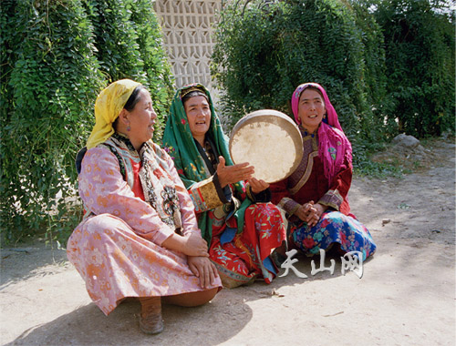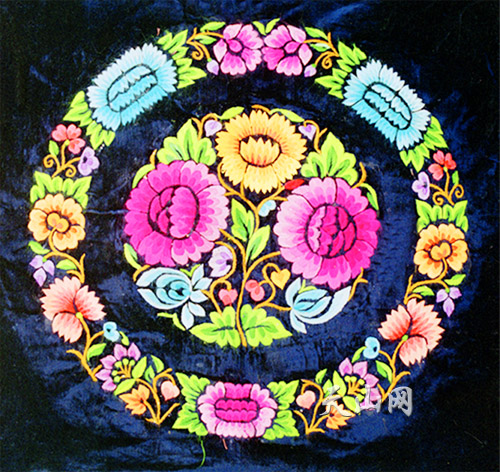 维吾尔妇女一向以擅长刺绣著称,哈密妇女是其中的典型。她们博采自然界中最能体现自己审美情趣的花卉草木、山峦流水等景物,并将它们升华,用银针和彩线智慧地构制成一幅幅艳丽华美的图案,进而将它们巧妙地安排在花帽、衣领、袖口周边,或枕头、被褥、饰巾、帷幔的醒目处,以展示她们的心灵手巧和艺术想像。抒发对大自然的钟爱和对美好生活的憧憬之情。